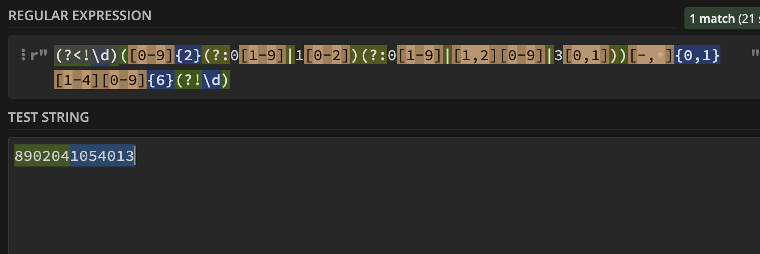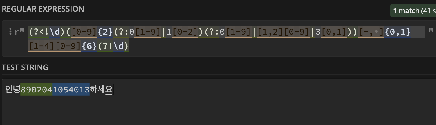 예를 들어 아래와 같이 특정 주민등록번호를 탐지하고자 할때, 앞뒤로 Lookahead, Lookbehind가 숫자가 아닌것으로 진행하면,