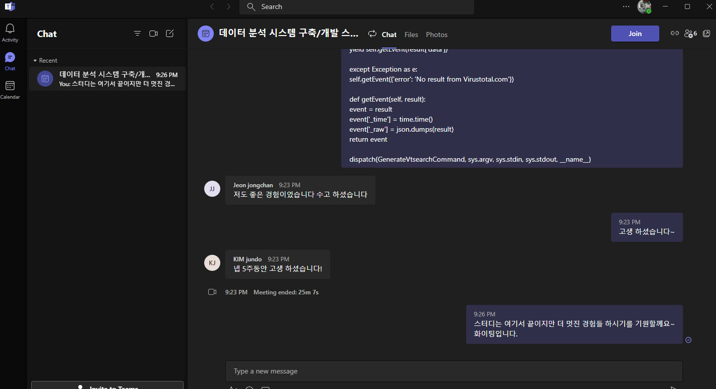 오늘을 마지막으로 5회동안 진행했던 데이터 분석 개발 스터디 모임을 마무리 하였다.