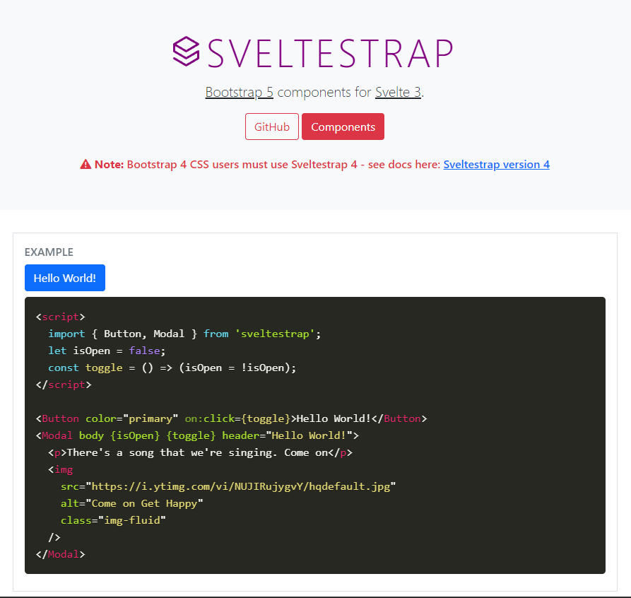SvelteStrap은 Bootstrap 와 완벽하게 호환하여 Svelte에서 손쉽게 Bootstrap을 사용할 수 있도록 도와준다.