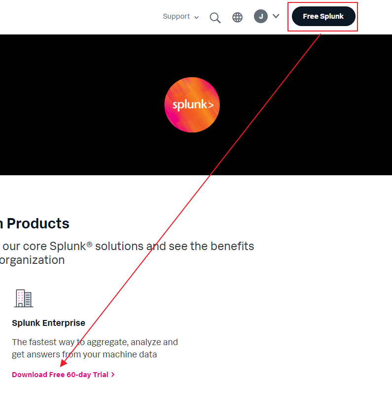 로그인을 하고 Free Splunk를 누르면, 무료로 사용할 수 있는 제품이 다운로드 가능하다.