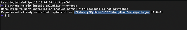 3. splunklib를 의존성 없이 설치를 진행한다.