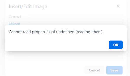 tinymce cannot read properties of undefined (reading 'then')