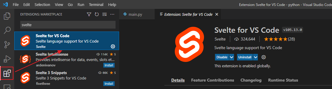 Visual Studio Code 설치후 이를 실행해서 Svelte 플러그인을 미리 설치해 두자.