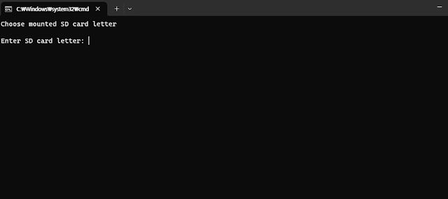 Micro Sd 카드를 넣고, install.bat을 실행하면, 설치할 SD 드라이브를 묻는다.