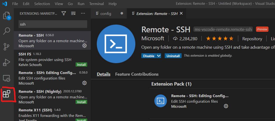 SSH는 아래 Extension을 통해 설치할 수 있다.