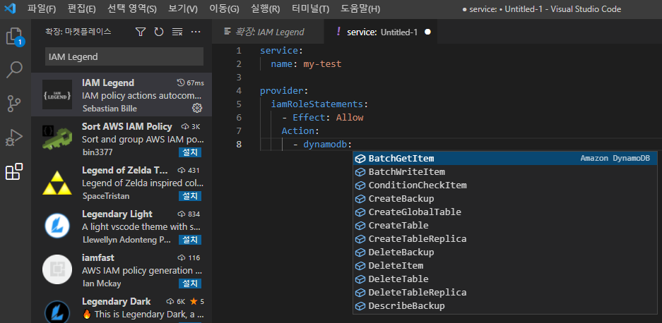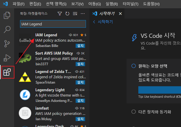 VS Code에서 설치한다면 확장에서 IAM Legend를 검색해서 설치할 수 있다.