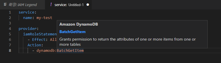 그런데 IAM의 모든 권한의 이름을 사전에 기억하기 어려운데, IAM에서 사용 가능한 권한에 대해 자동 완성을 지원해주는 IM Legend라는 플러그인을 소개해 본다.