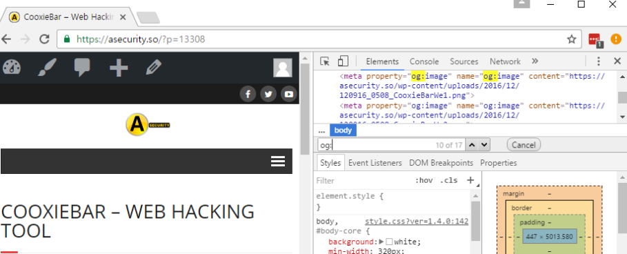 만약 브라우저로 디버깅 한다면, 크롬의 경우 F12키를 눌려 Element에서 Ctrl + F로 og: 를 검색하여 Source 에 OpenGragh 정보가 들어가 있는지 확인하면 된다.