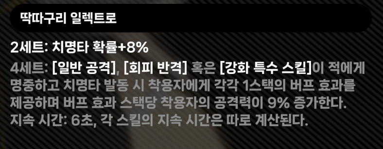 2세트시 치명타 확률 8% 확보