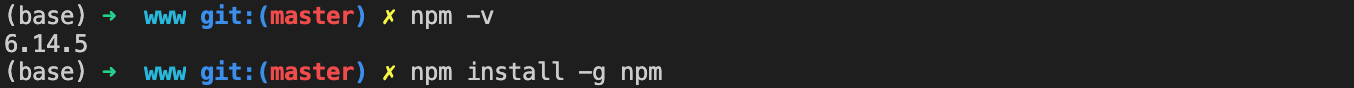 -g 옵션을 이용하여 npm 을 최신 버전으로 올릴 수 있다.