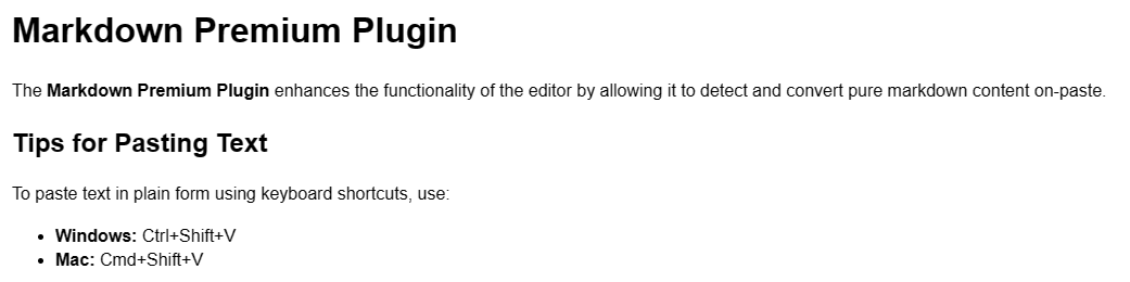 마크다운 형식의 콘텐츠를 편집기에 붙여넣어 적절한 형식의 리치 텍스트로 즉시 변환할 수 있는 기능으로 기술 스택을 간소화할 수 있습니다. 기본 마크다운 포맷 변환을 사용하여 인라인으로 작성하고, 당사 API를 통해 TinyMCE의 콘텐츠를 마크다운으로 출력합니다.